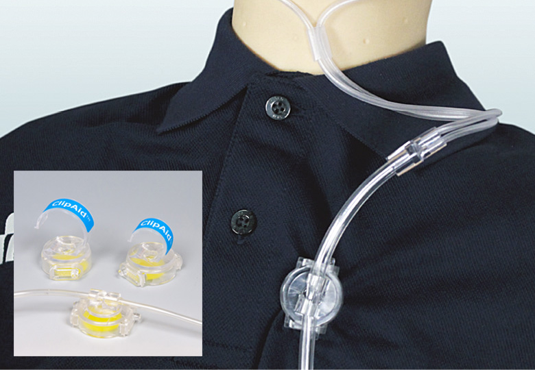 ・呼吸管などのコルゲートチューブ(蛇管)を患者さんの衣類等に固定するためのクリップです。